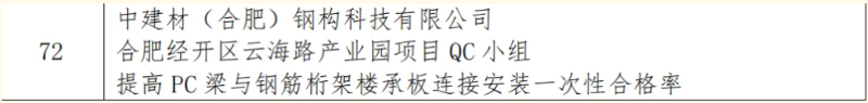 本次競賽旨在深入貫徹落實(shí)《質(zhì)量強(qiáng)國建設(shè)綱要》精神,引導(dǎo)鋼木建筑行業(yè)企業(yè)科學(xué)運(yùn)用先進(jìn)質(zhì)量管理方法,全面提升工程質(zhì)量管理水平。全國各地眾多鋼木建筑企業(yè)踴躍參賽,競爭異常激烈。公司高度重視此次競賽,精心組織內(nèi)部質(zhì)量管理小組進(jìn)行成果申報(bào)。最終,公司多個(gè)質(zhì)量管理小組的項(xiàng)目成果在一眾參賽作品中成功突圍。其中,合肥經(jīng)開區(qū)云海路產(chǎn)業(yè)園項(xiàng)目QC小組的“提高 PC 梁與鋼筋桁架樓承板連接安裝一次性合格率”課題榮獲二等獎(jiǎng)。該成果聚焦鋼桁梁底部作業(yè)難題,通過技術(shù)創(chuàng)新,大幅提高了施工效率與安全性,為業(yè)內(nèi)同類工程提供了極具價(jià)值的實(shí)踐范例。此外,中建材鋼構(gòu)公司還有6項(xiàng)成果榮獲三等獎(jiǎng),獲獎(jiǎng)成果覆蓋鋼結(jié)構(gòu)制造、安裝以及施工工藝優(yōu)化等多個(gè)領(lǐng)域,均是公司質(zhì)量管理小組在實(shí)際工程項(xiàng)目中,運(yùn)用科學(xué)方法,深耕技術(shù)創(chuàng)新與質(zhì)量改進(jìn)工作的結(jié)晶。